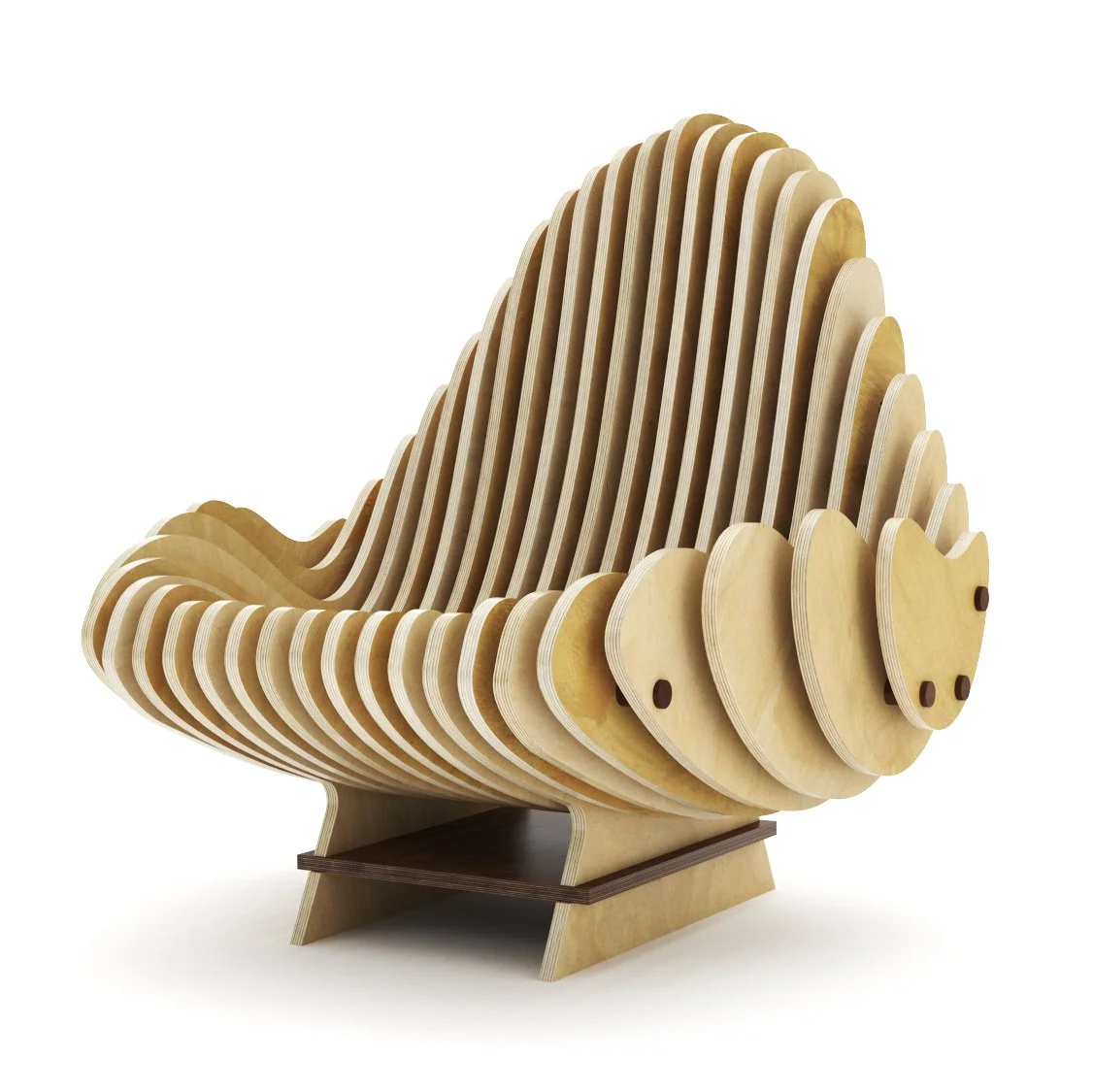 The Terraform Chair was born to stand out, and add a powerful modern statement to any space it occupies. Crafted from Baltic Birch Plywood, this piece is held together by a network of threaded metal rods and wooden spacers.